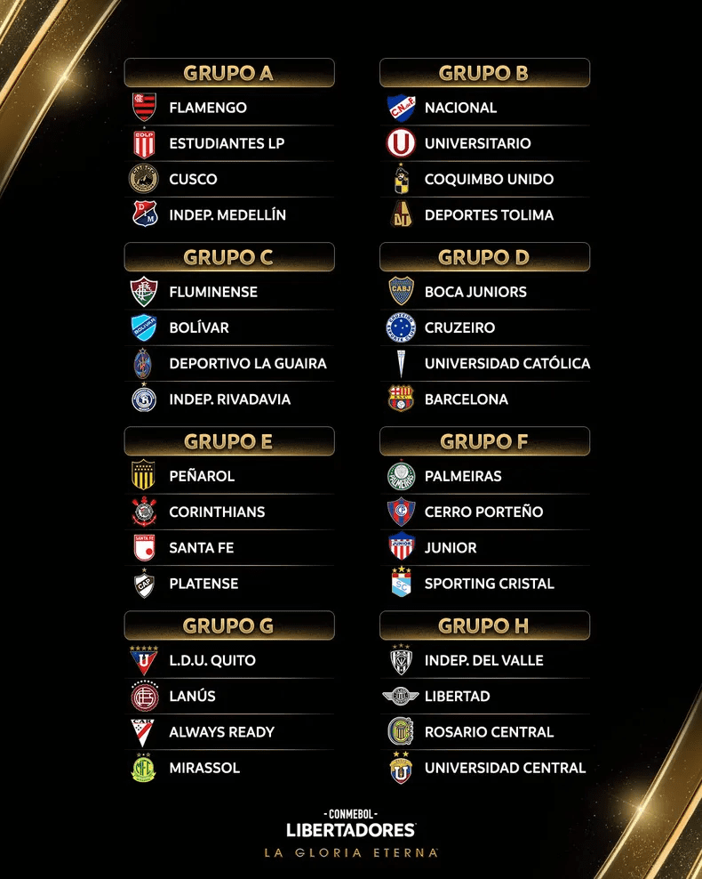 Por su parte, Estudiantes de La Plata tendrá un desafío de alto nivel en el Grupo A, donde enfrentará al campeón vigente Flamengo, además de Cusco FC e Independiente Medellín.