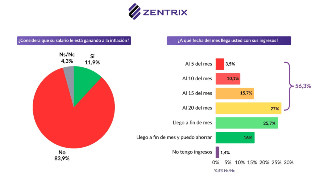 El estudio indica que el recurso al financiamiento ya no responde principalmente a decisiones de inversión, sino a la necesidad de cubrir gastos cotidianos. En ese contexto, el 83,9% de los encuestados afirmó que sus ingresos no logran acompañar el ritmo de la inflación, mientras que más de la mitad señaló que no consigue llegar al día 20 de cada mes.